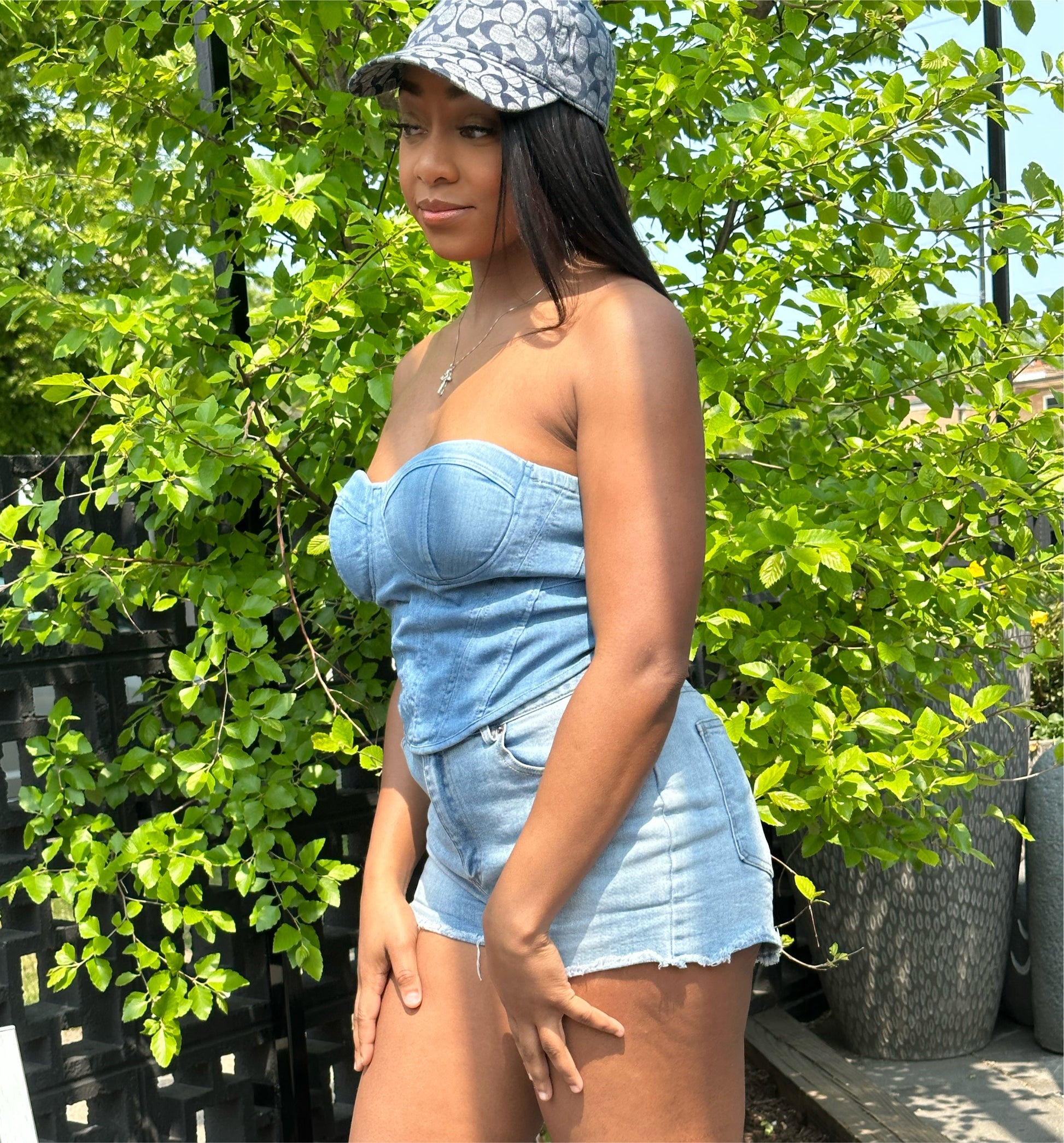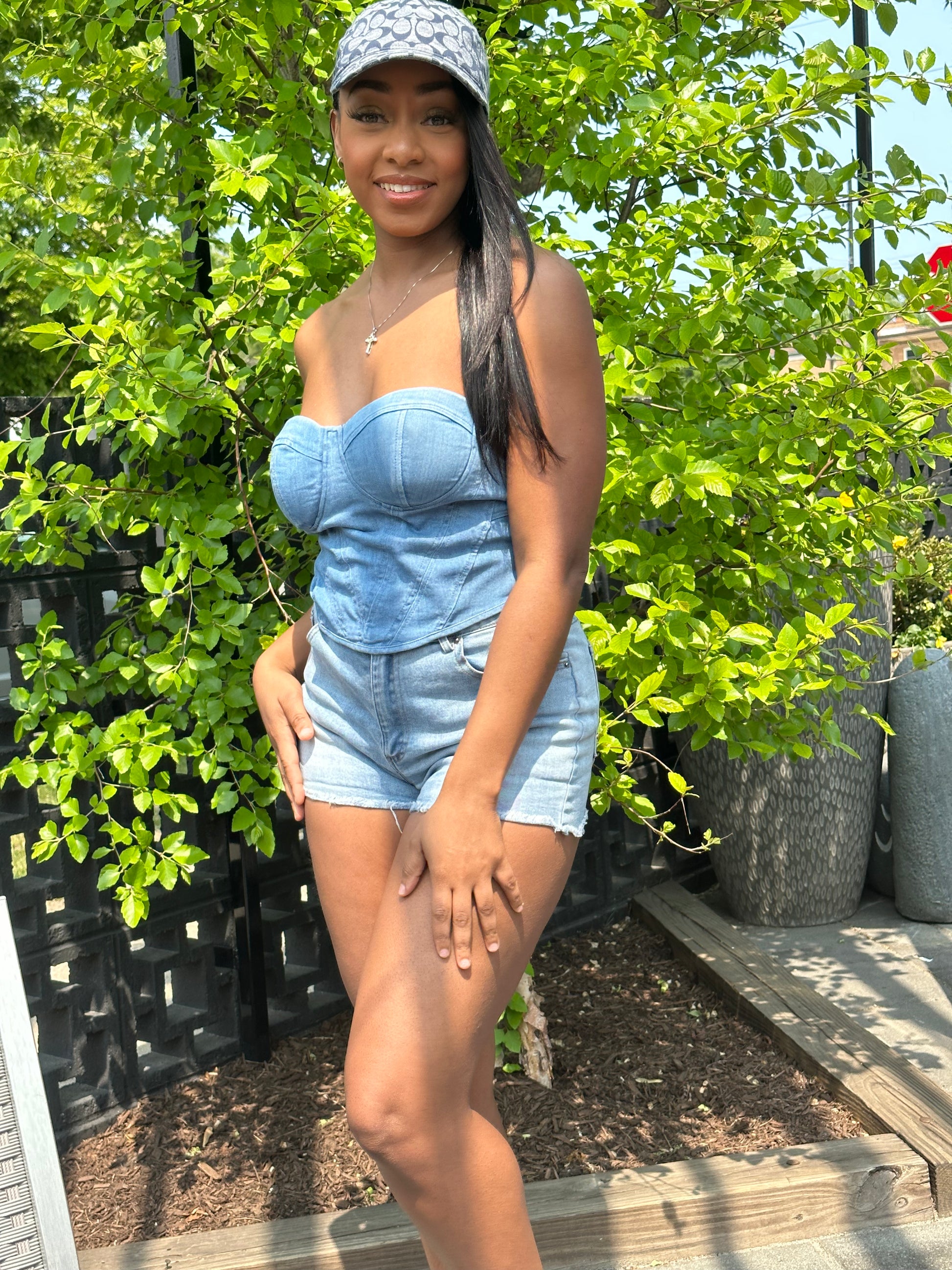 You are sure to find the best denim collection at Miya Monet Boutique. Add this beautiful medium wash denim bustier to your collection and pair a variety of bottoms it. You can wear it with a mini skirt, jeans, or even leather pants. The color scheme possibilities are never ending, the top is comfortable, great fabric, and the stretch is also a plus. Don’t miss out on the Diva Denim Too sis, it’s just your style!