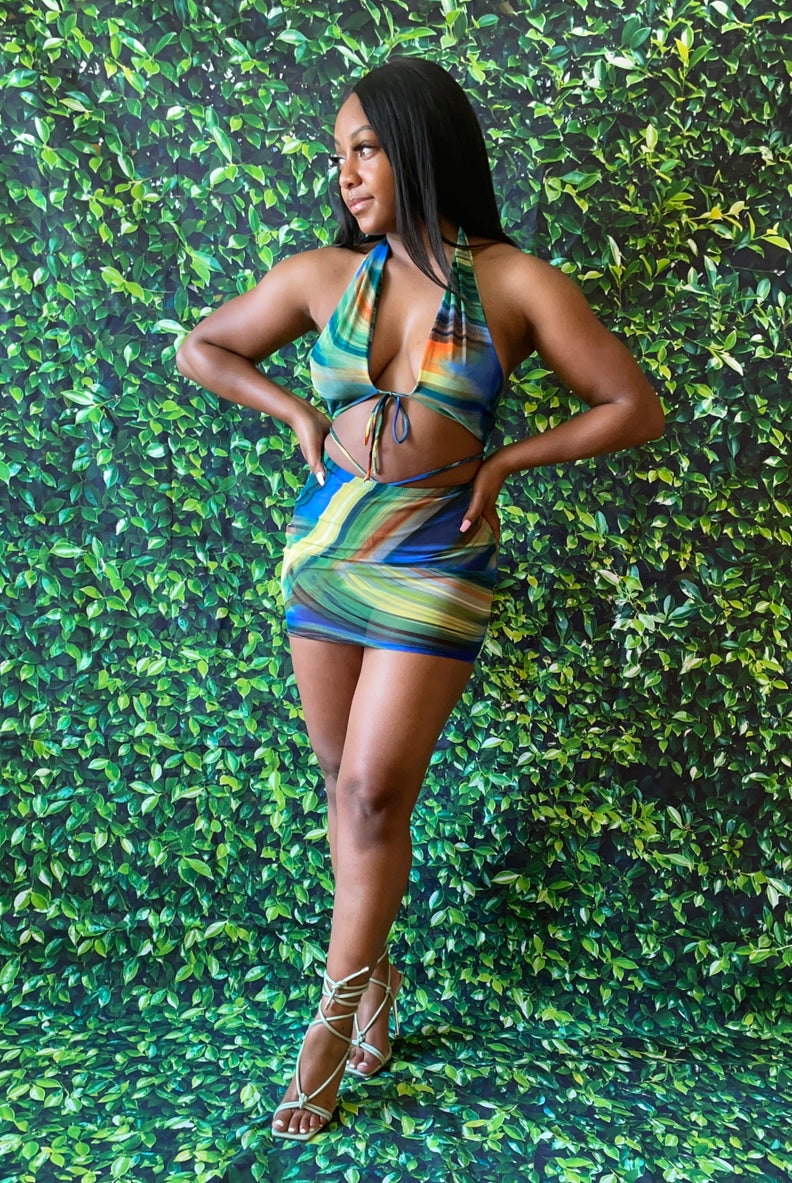 This beautiful sheer set is giving summer boat vibes sis. It looks great on melanated skin and is super comfy. Pair your favorite tie up heels with the Tanzania set and step outside for the festivities!
